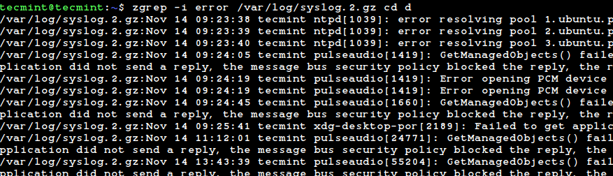 Отдельного упоминания заслуживают производные от grep. Первый — это zgrep, который, как и zcat, предназначен для использования с файлами, сжатыми gzip. Он принимает те же параметры, что и grep, и используется таким же образом: