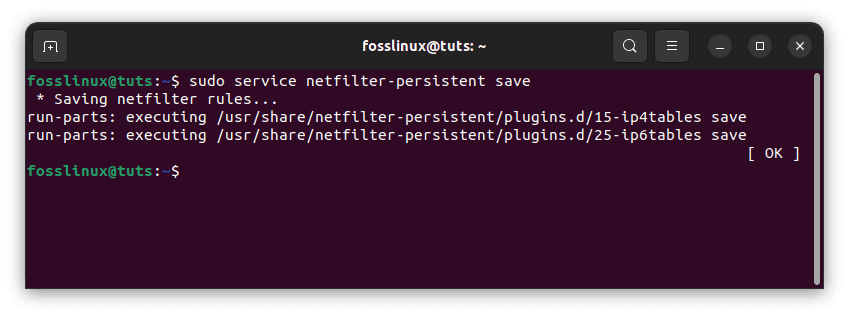 После установки используйте следующую команду, чтобы сохранить правило iptables: