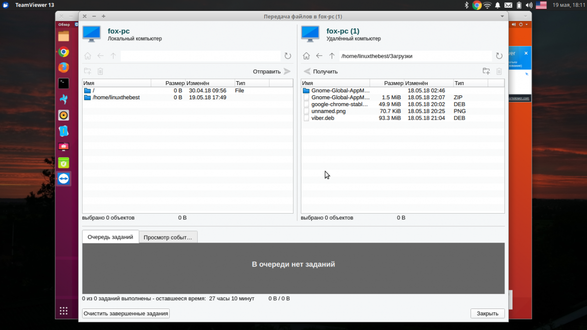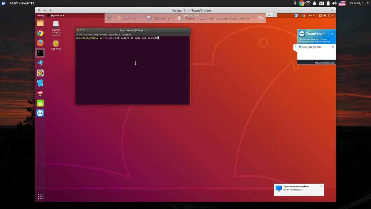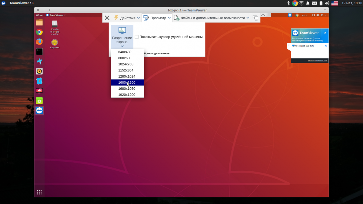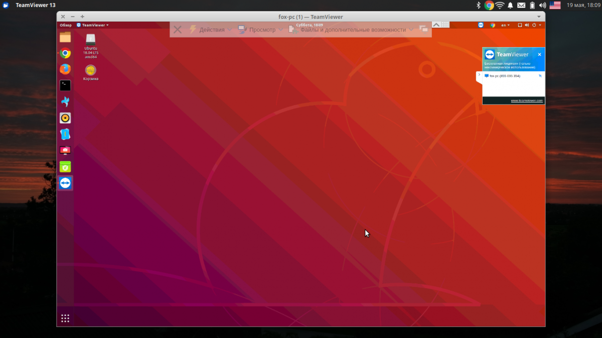 После подключения вы получаете полный контроль над целевой системой. У меня есть система под управлением Xubuntu, с которой я установил подключение к удаленному рабочему столу к другой системе, работающей под управлением Ubuntu 18.04