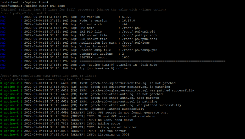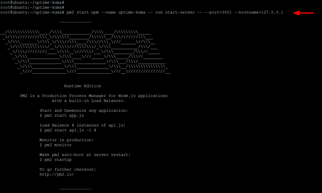 Щоб встановити демон PM2, виконайте наступну команду, перебуваючи в каталозі uptime-kuma.