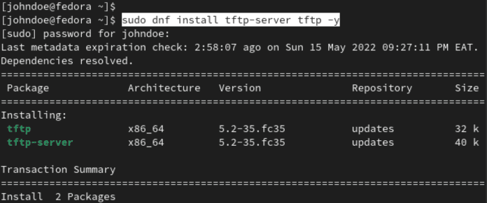 Ви можете легко встановити TFTP Netflix за допомогою менеджера пакетів DNF. Виконайте наведену нижче команду, щоб встановити TFTP-сервер та пакети клієнтів.