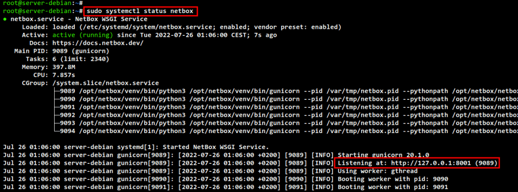 Зрештою, перевірте служби NetBox за допомогою наступної команди.
