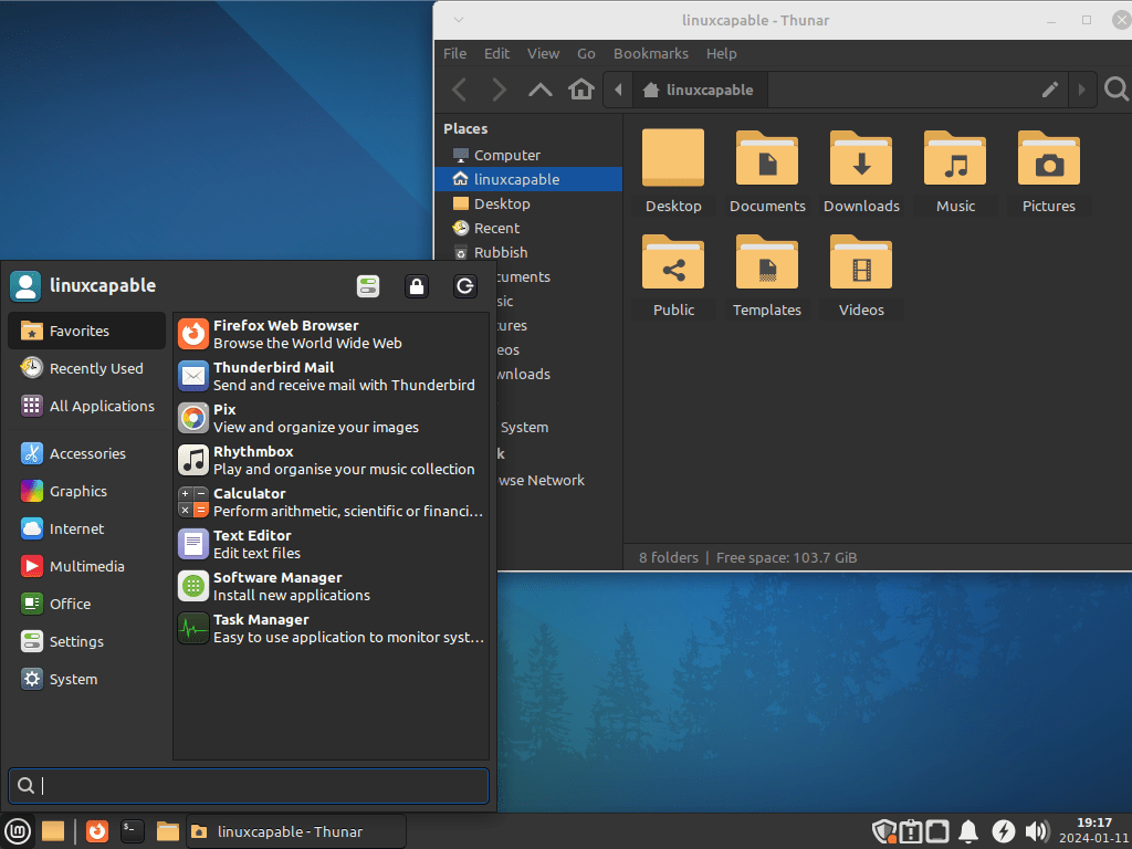 - Изучите панель и оконный менеджер Xfce: Эти инструменты можно настраивать в соответствии с вашим рабочим процессом. Панель обеспечивает быстрый доступ к приложениям и системным функциям, а менеджер окон эффективно управляет окнами приложений.