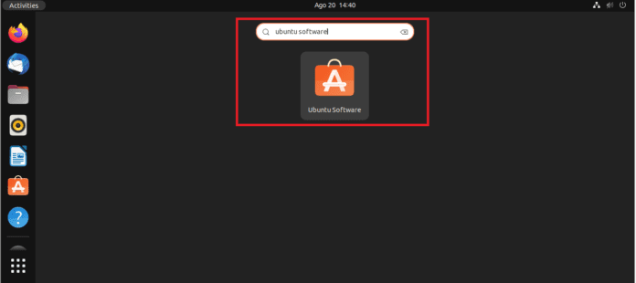После этого перейдите в строку поиска и введите «программное обеспечение Ubuntu», и появится вот такая иконка, нажмите на нее, чтобы открыть: