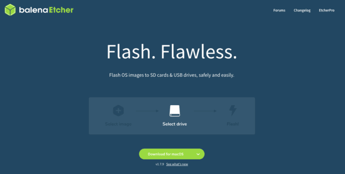 BalenaEtcher можно скачать с официального сайта Etcher. Загрузите программное обеспечение, совместимое с вашей родительской ОС, и установите его.